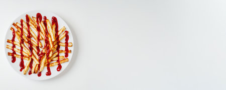 Savor crispy French Fries with tasty ketchup beautifully served on a white plate