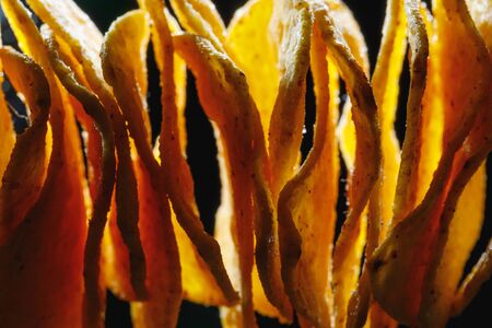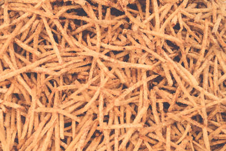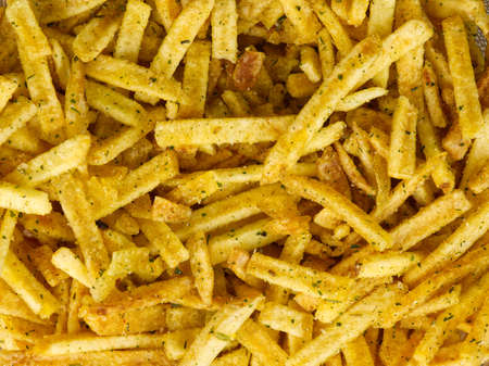 The texture of potato sticks with spices.