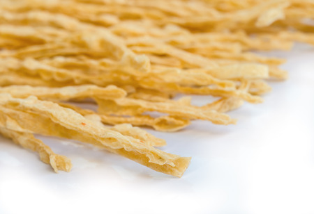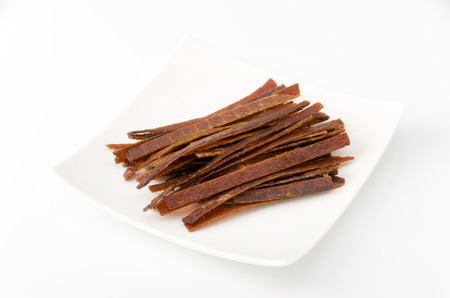 Sweet and spicy dried squid isolate on white.
