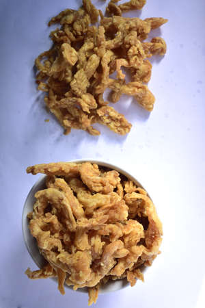 Delicious fried food, fried squid whiskers.on white background