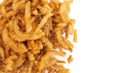 Fried Onions for Green Bean Casserole or Salad Garnish Isolated on a White Background