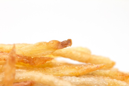 French fries on a white background. macro