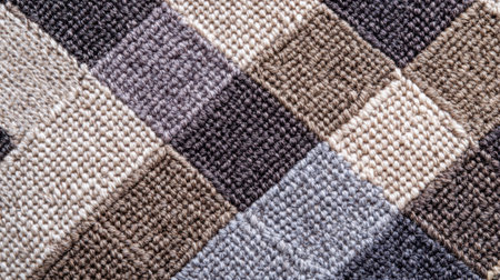 Close-up photograph showcasing a textured fabric with a geometric pattern of squares in various neutral tones, ideal for backgrounds and interior design projects.