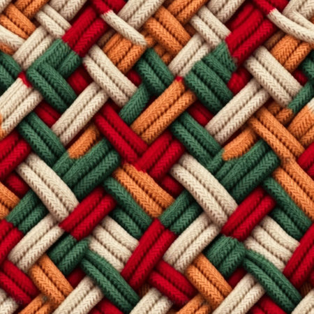 Intricate pattern of colorful woven threads forming a lively texture, ideal for textiles, crafts, or design inspiration