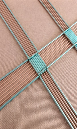 This close-up image features an intricate woven texture with striking metallic accents, showcasing a blend of craftsmanship and artistic design. Perfect for backgrounds.