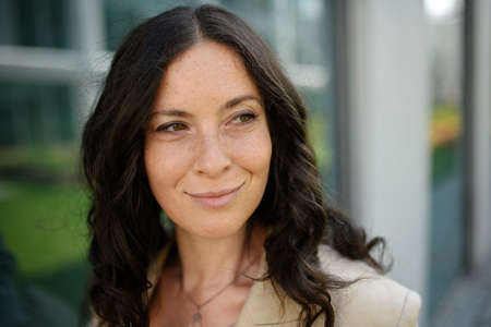 Close-up of woman walking going to work.. Successful happy businesswoman commuting in the morning in city street.