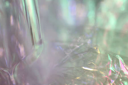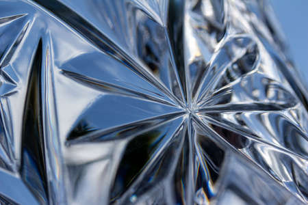 Macro abstract art background of beautiful lead crystal glass surface, reflecting bright natural light