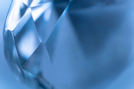 Macro abstract art design view of lead crystal glass surface texture reflecting brilliant blue sky color