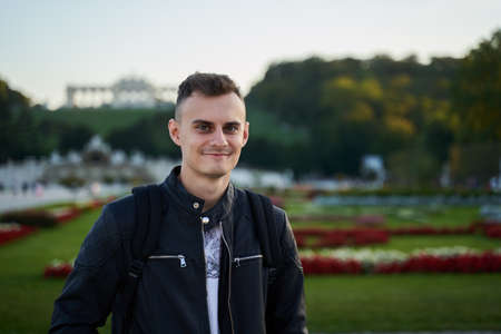 Handsome young man. Portrait of a young man in a jacket, stands on a black background