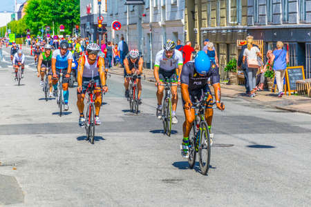 COPENHAGEN, DENMARK, AUGUST 21, 2016: Detail of an athlete participating at the 2016 KMD Ironman triatlon competition in Copenhagen.