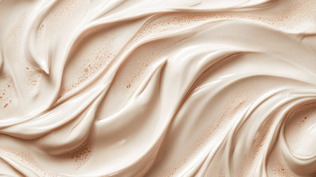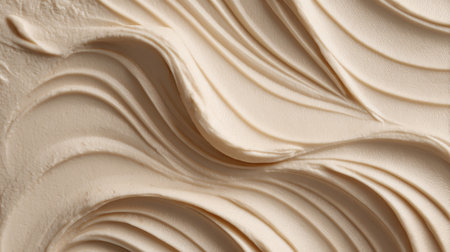 Close-up view of creamy beige waves depicting a rich texture. Ideal for culinary arts, baking inspiration, and artistic backgrounds, showing smoothness and elegance.