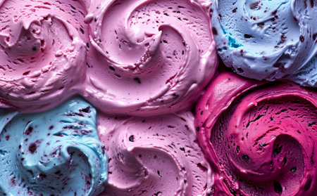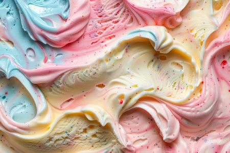 close up of colorful ice cream texture as background, top view.