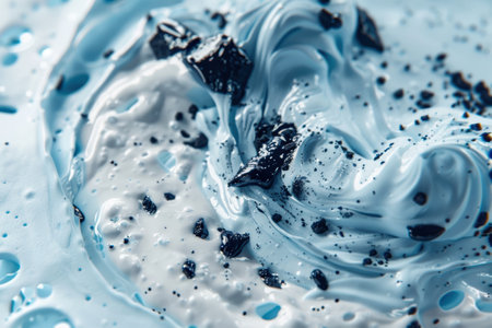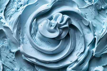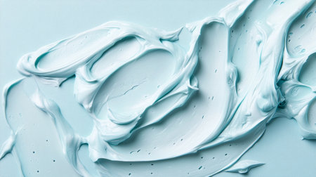 cream texture forming abstract patterns on a pale blue matte surface generative ai