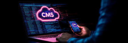 Businessman Accessing Cloud-Based Content Management System CMS Software on Mobile Device