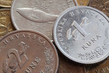 Macro photo of 1 Croatian kuna (HRK) coin.