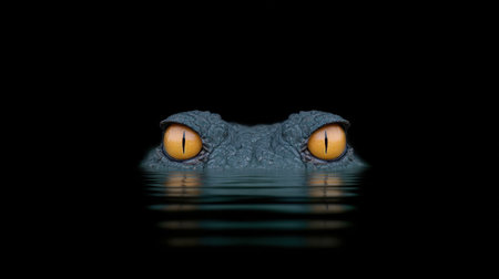 AI Generated. Alligator Eyes Glowing in Swamp Water at Night