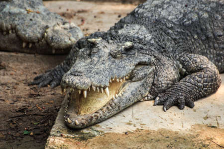 the crocodiles relax near the pond among nature