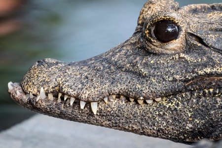Crocodile head close-up. Caiman crocodilus