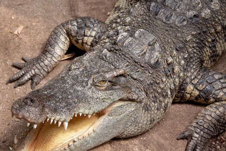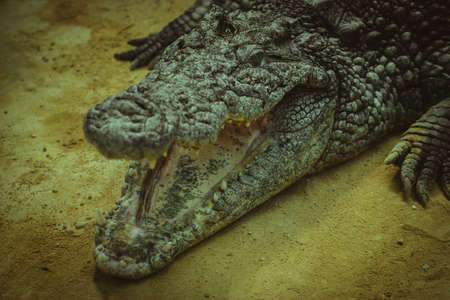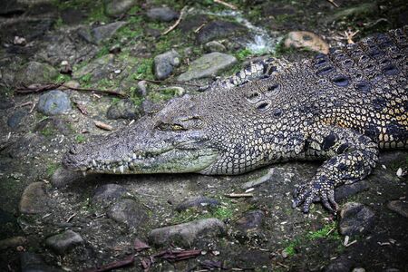 View on a lazy crocodile lying on the ground - head view
