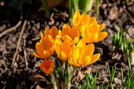 Crocus vernus - orange crocus flowers in spring.