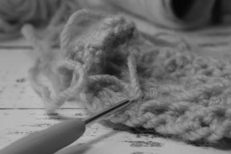 Close up shoot of knitting with crochet technique equipment