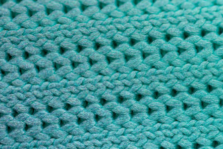 Crochet hook on a seamless knitted bedspread. The repeating texture of a hand knitted bedspread. Colored knitted background. Space for text.