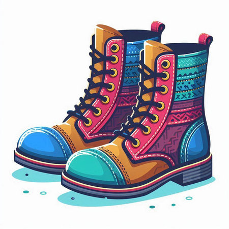 Set of multicolored winter boots. Vector illustration in retro style