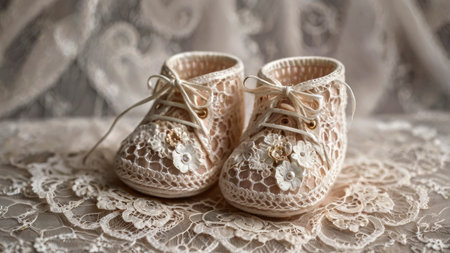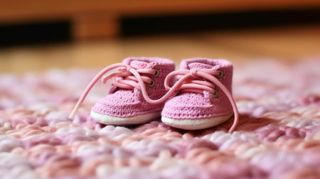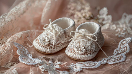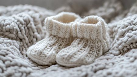 baby booties on a soft blanket, created with generative ai