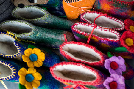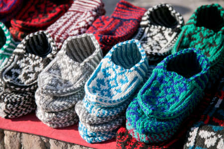 Street market with knitted slippers, Khiva, Uzbekistan