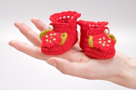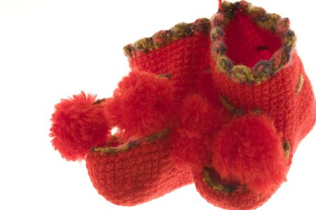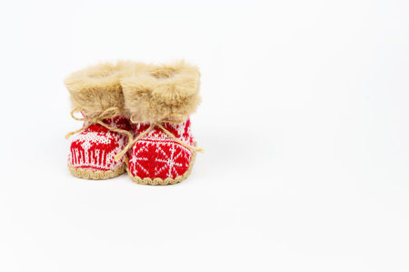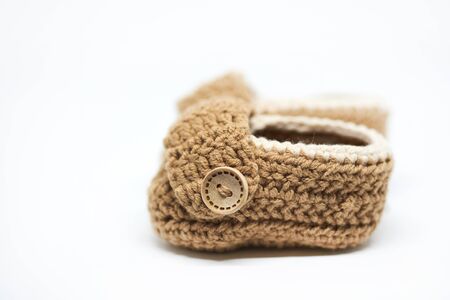 Handmade sweet baby booties isolated on a white background