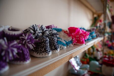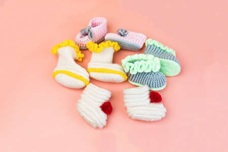The background of the various knitted baby shoes