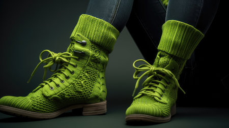 Fashionable women's knit, warm boots with a green color sole.