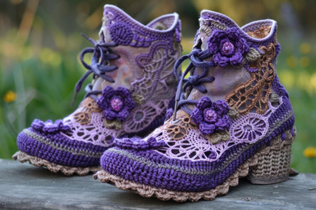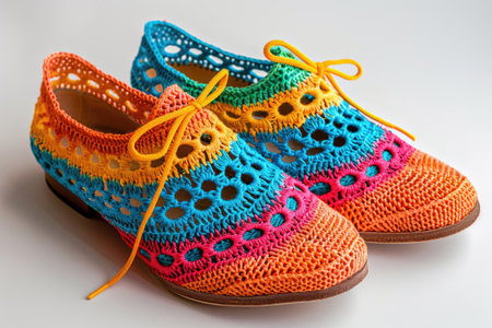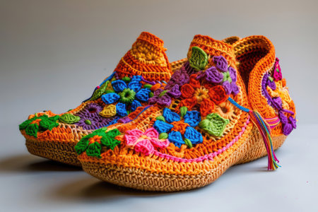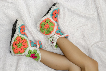 Handmade bright stylish crocheted shoes