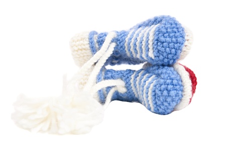 studio-shot of selfmade hand-knitted woolen baby socks