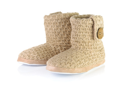 Pair of warm slippers on a white background