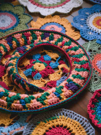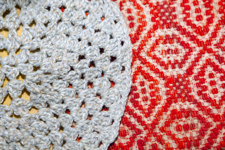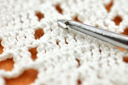 close-up view of beautiful needlework in process, needlework concept, home production, beautiful knitted, crocheted work, hobby