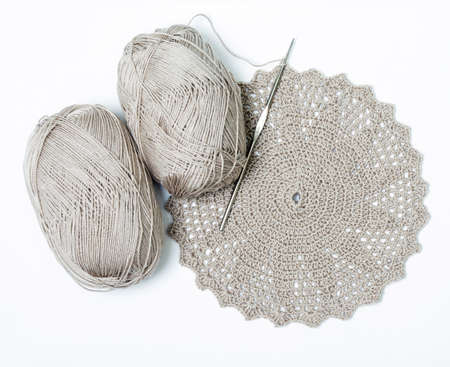 Beautiful wool handmade decoration. Knitting and crochet. Handmade crocheting crafts. DIY.