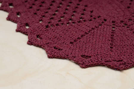 Crochet piece made of wool and knitted by hand with crochet hook and woolen buds
