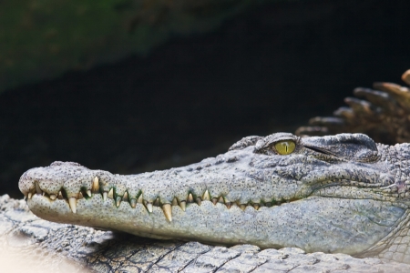Close up on crocodile head with big teeth