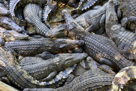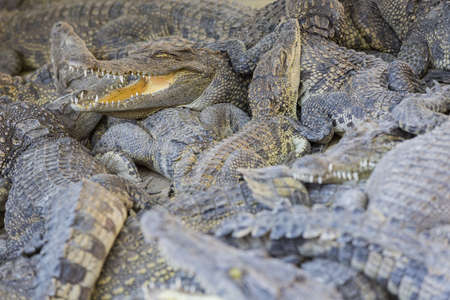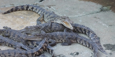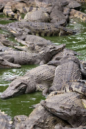 many Crocodiles relax in Thailand