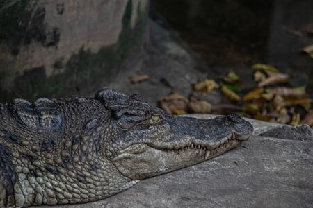 crocodile closeup. crocodile head with beautiful skins texture