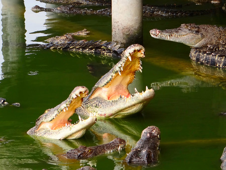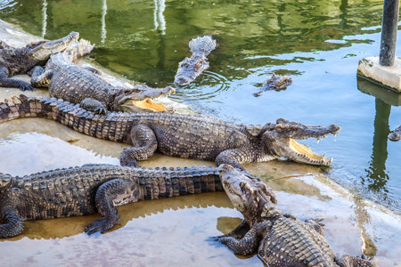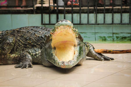 Crocodile zoo in Pattaya, Thailand in a summer day