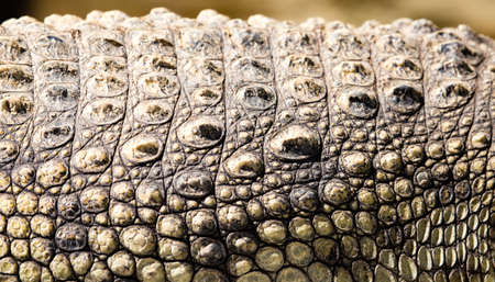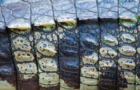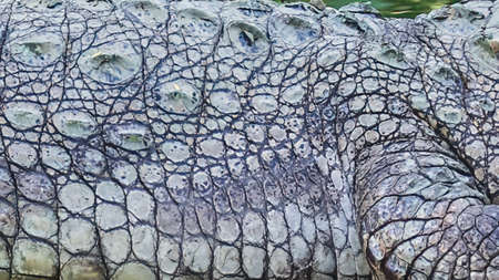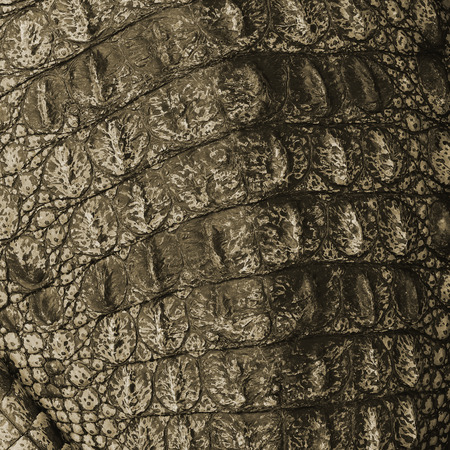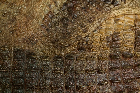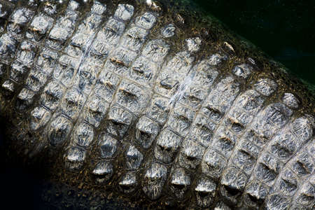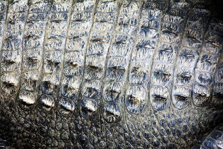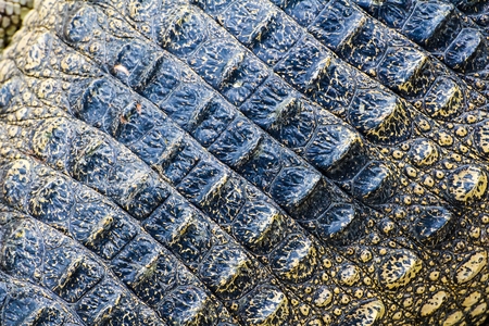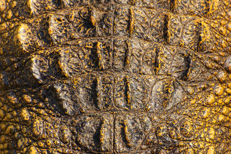 Texture background of Crocodile alligator skin. Closeup of real living alligator showing spikes in skin.