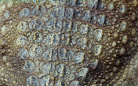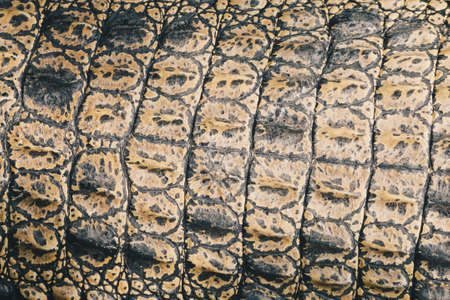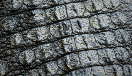 Closeup background texture photo of alive crocodile skin, natural animal pattern