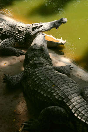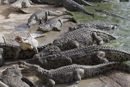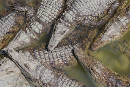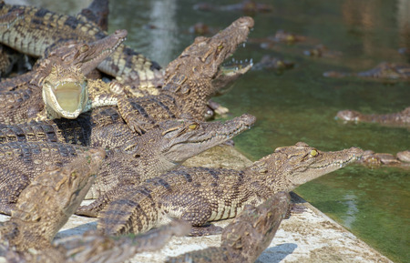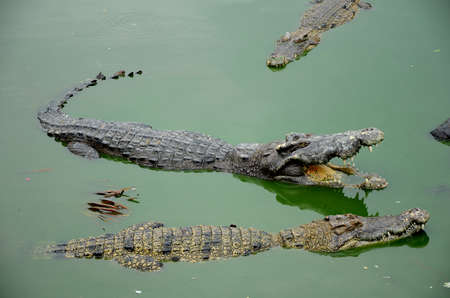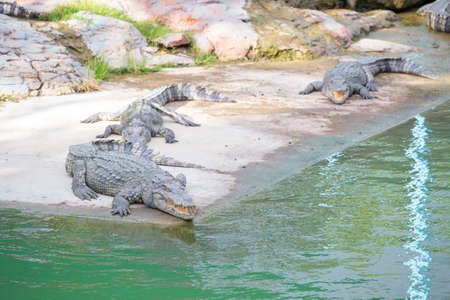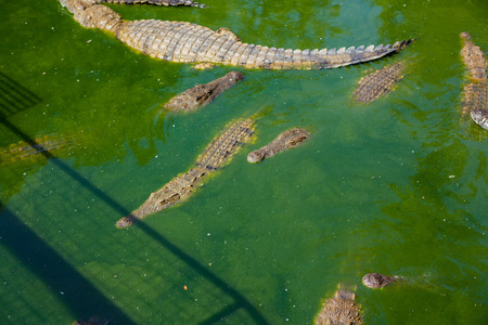 Many crocodile in the lake of the zoo ot thailand. High quality photo