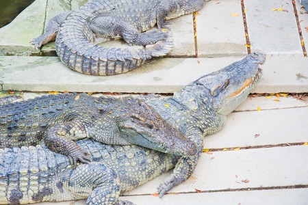 Crocodile zoo in Pattaya, Thailand in a summer day