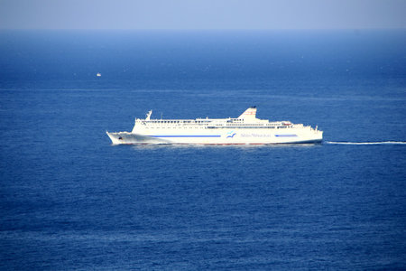 open blue ocean large boat transport shipping clouds nature landscape; Dorset; England; UK