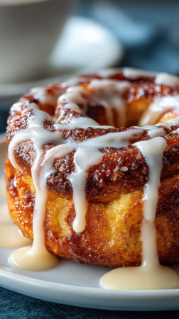 Delicious pastry with layered caramel topping served on a white plate at a cozy cafe