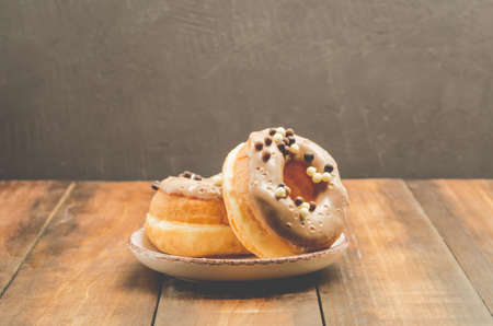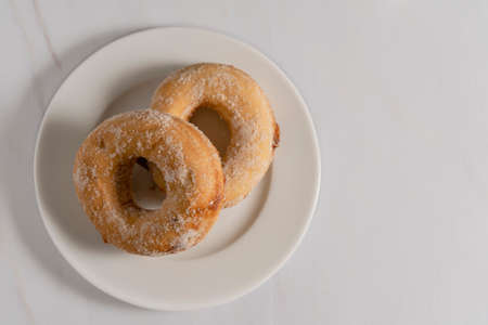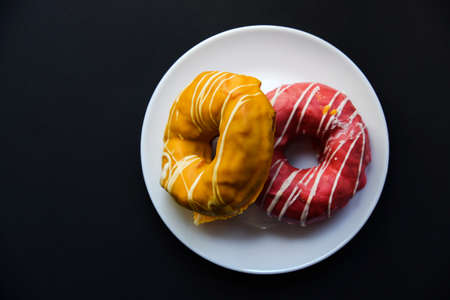 Sweet donuts donuts on a white plate. American delicious and sweet donuts. healthy eating.