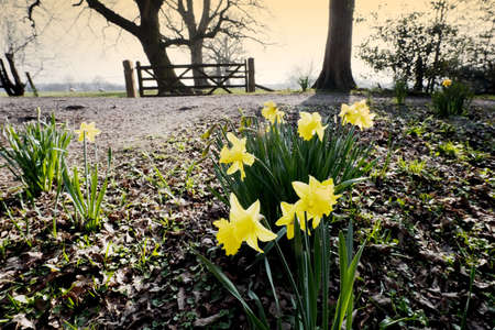 heart of england way footpath baddesley clinton estate warwickshire church and daffodils